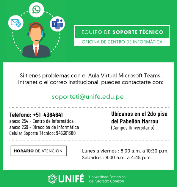 La Oficina del Centro de Informática de UNIFÉ ofrece las siguientes ayudas para las Estudiantes: